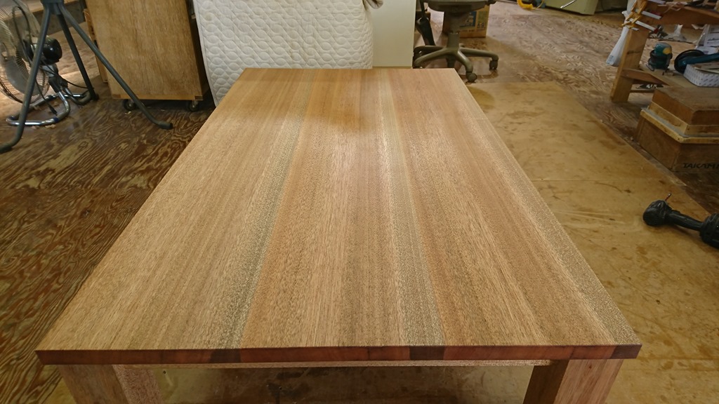 こたつ製作3 2017年10月27日 最終更新日時 : 2017年10月27日 高見 耕 オイル塗り込んで完成しました。 オイルを塗るのも力仕事です。 塗って耐水ペーパーでひたすら磨きます。 塗る時間の10倍かかります・・・(汗) すると・・・ 鈍い光沢がでます。(ピントが合っていませんが・・・) 今回はスマホのカメラをイジッて近い色にしました。 普通に撮ると白っぽいです。 この「こたつ」は3つのパーツに分解できます。 脚x4、こたつやぐら、天板(重いですが) 脚の取り付け方はヒ・ミ・ツです。 あっ!まだ、ヒーターの取り付けが残っていました。 次回で完成ですかね~ \ 最新情報をチェック / FacebookXBlueskyHatenaCopy