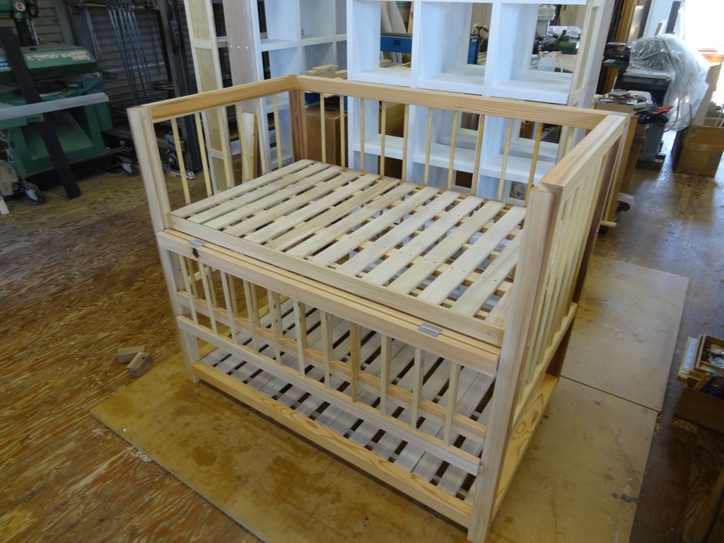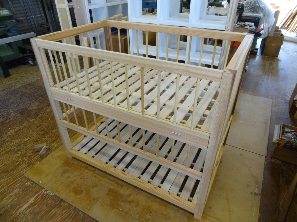 エース完成 2014年9月5日 最終更新日時 : 2014年9月5日 高見 耕 ベビーベッド完成です。 材:杉無垢材 縦格子丸棒:不明 スノコ:桐 高さ調整も可能で床からスノコまでの最大高さ 700mmに設定してあります。 もちろん、分解可能。 値段は既製品には負けますが、製作者の心がこもった物です。 なんて、宣伝文句みたいになってしまいましたが、 良い出来でした。・・・・・・(笑) \ 最新情報をチェック / FacebookXBlueskyHatenaCopy