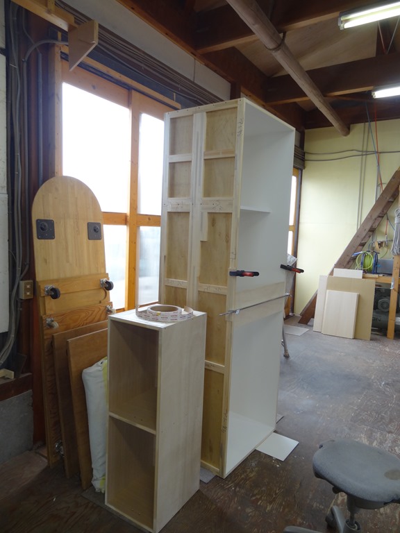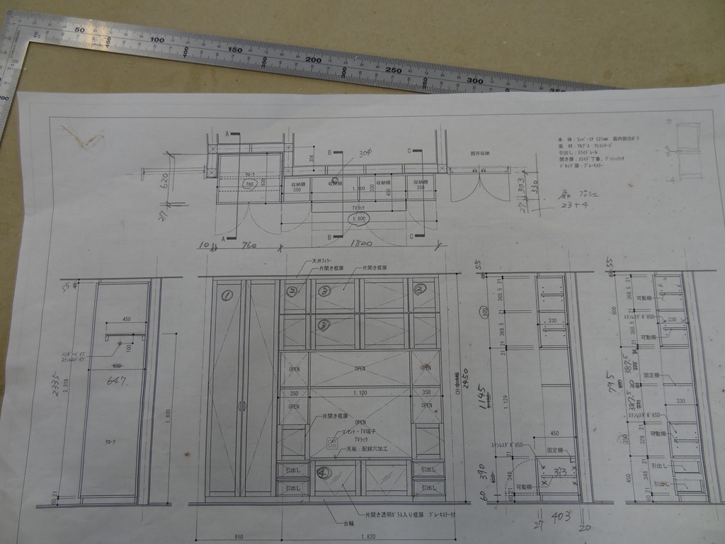 南足柄K邸 壁面収納1 2015年7月13日 最終更新日時 : 2015年7月13日 高見 耕 現場打ち合わせは7/4にしていました。 壁面収納 タモ材(無垢、突き板)にて製作 今回は框扉(タモ無垢材)で製作です。 扉材 大まかに切ってほったらかしています。 今のうちに反ったりねじれたり好きにしてね。 加工してからは困るから・・・・ 並行して本体製作しています。 \ 最新情報をチェック / FacebookXBlueskyHatenaCopy