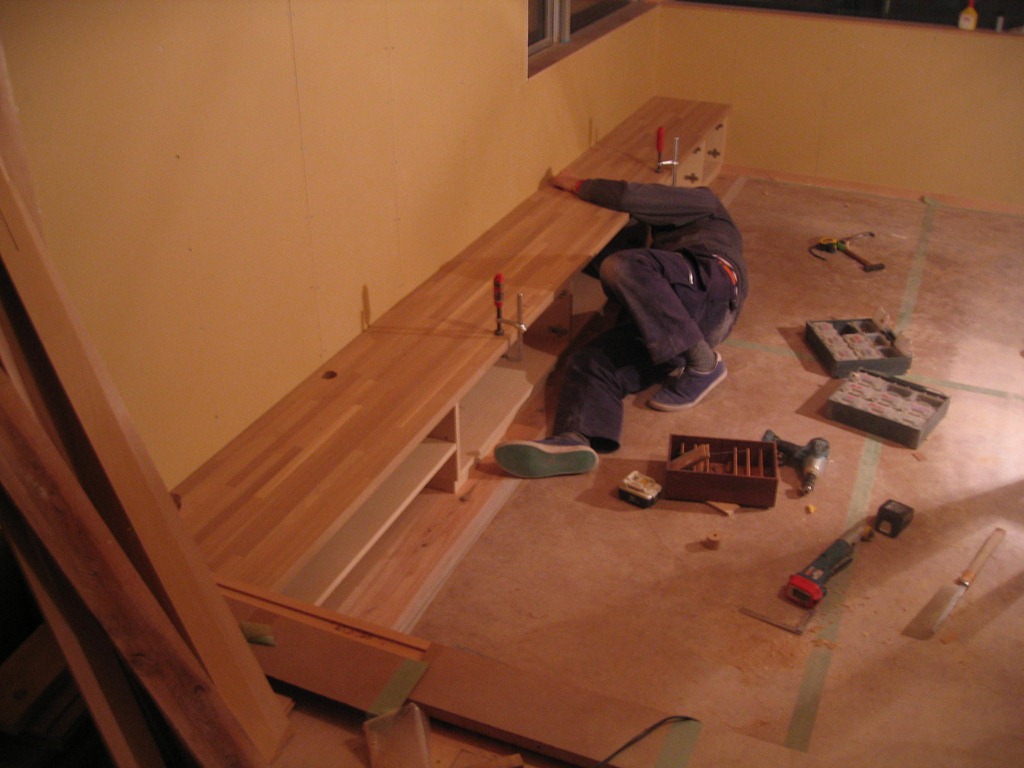家具のしたから天板を固定しているところです。