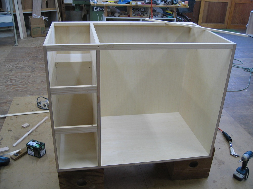 左側が引き出し3段になるのですが下2段の奥行きを縮めて