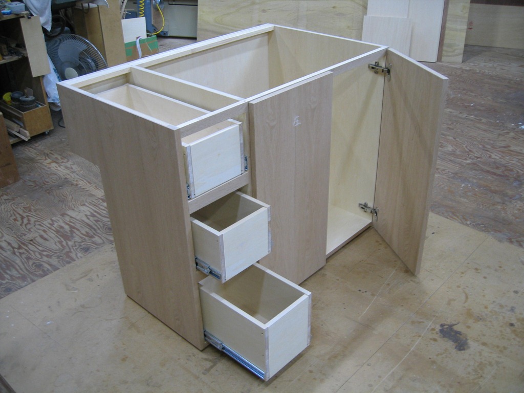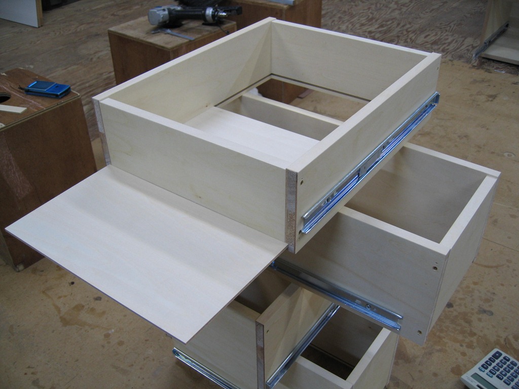 これは引き出しを組んで底板を本体に差し込んでいるところです。
