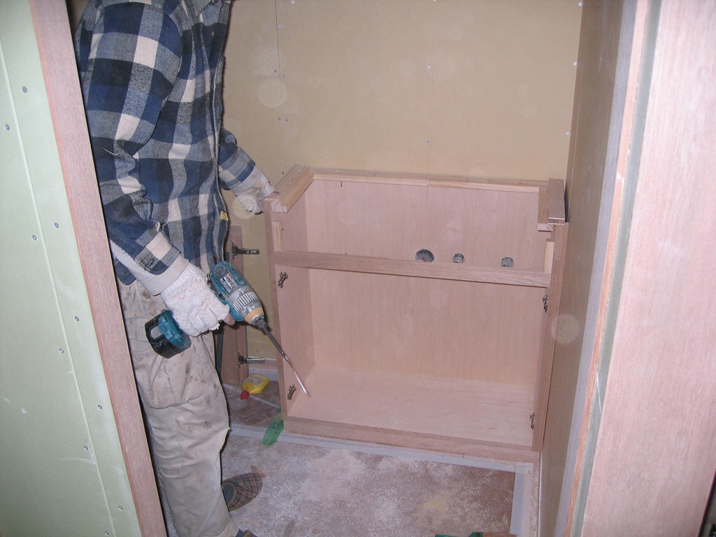特に問題なく終了!右2枚の扉は鏡を貼ります。