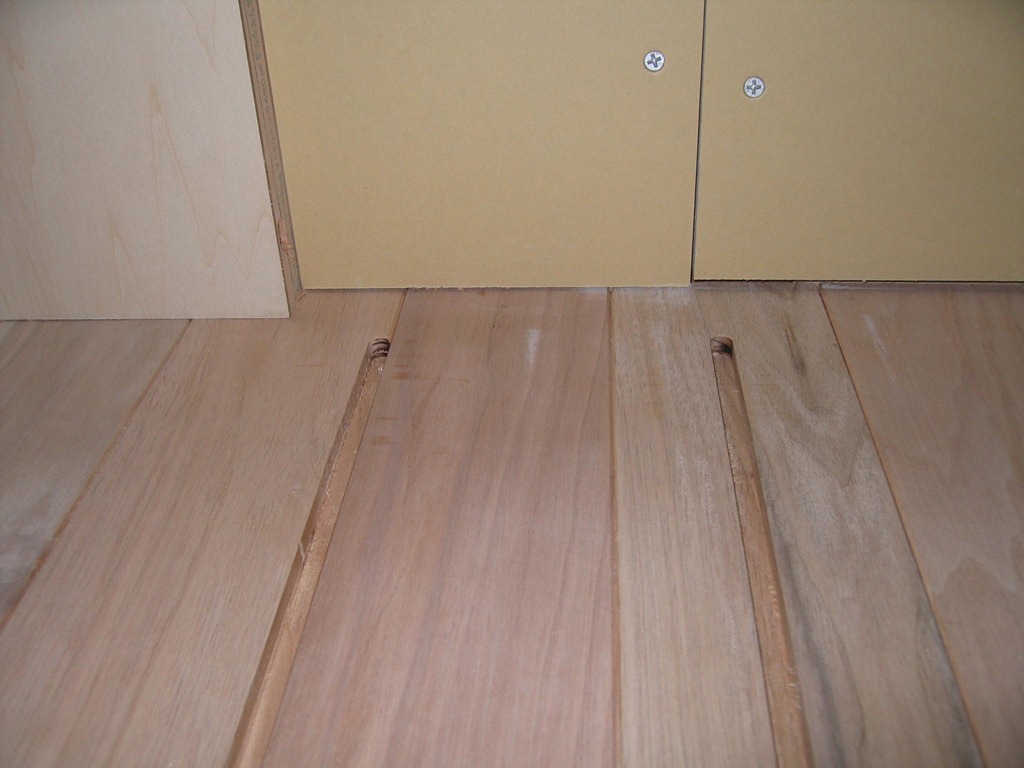 移動式本棚のレールを埋め込むためにフローリングに