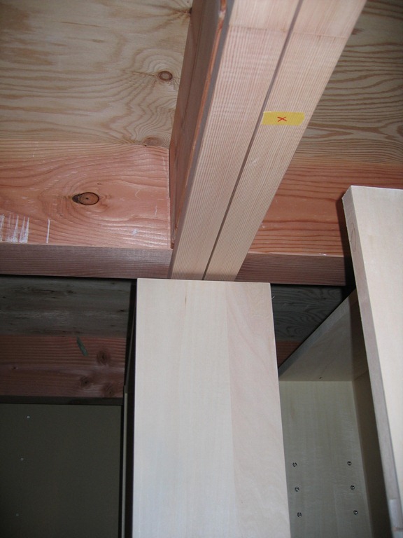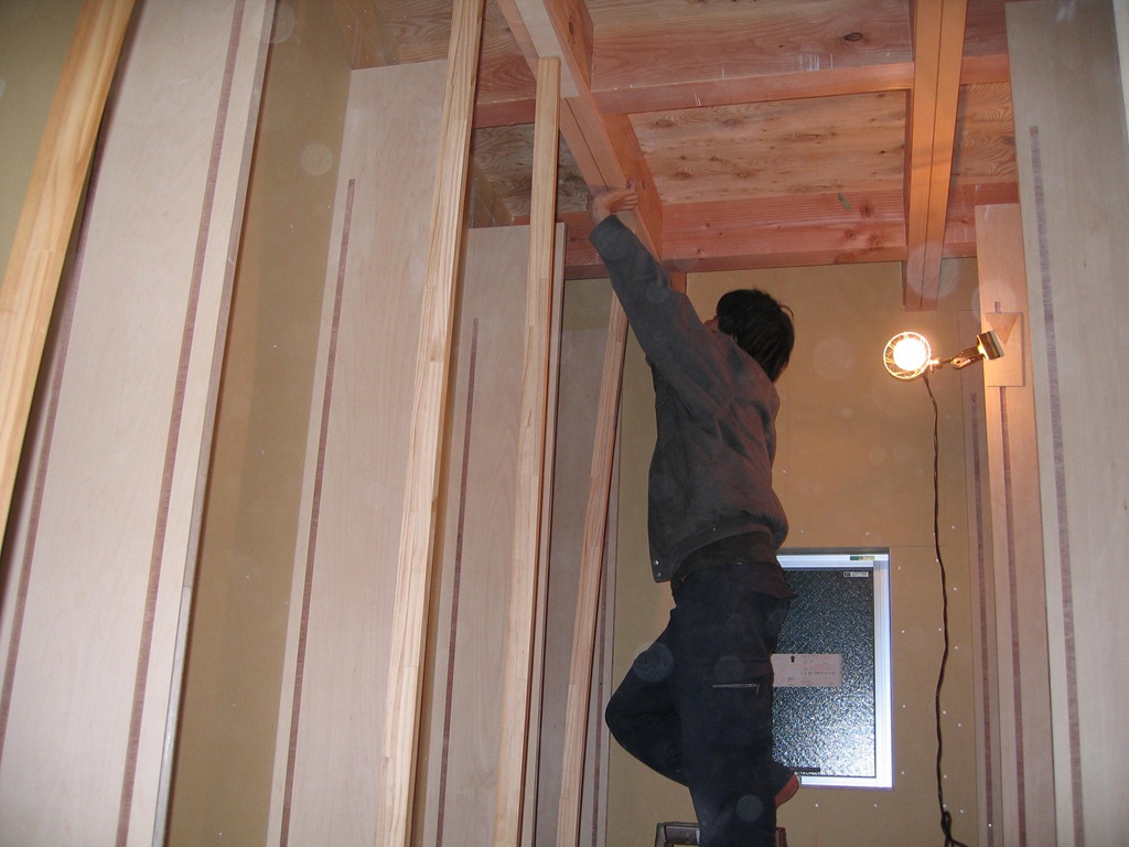 本棚が倒れないように鴨居を取り付けているところです。