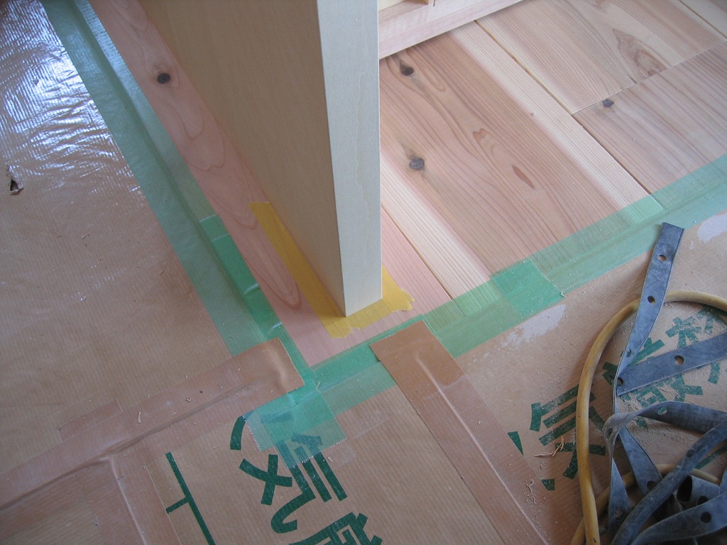 なぜかというと、床材が無垢板で多少波打つからです。