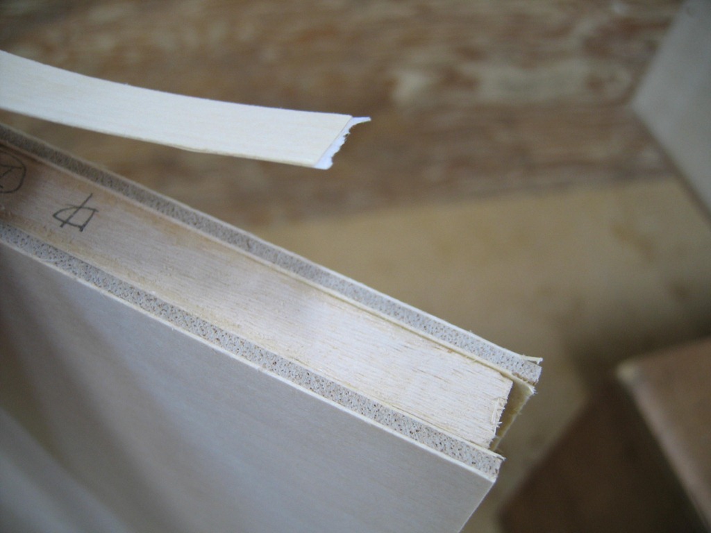 パネルに同材の薄い木を貼り付けます。