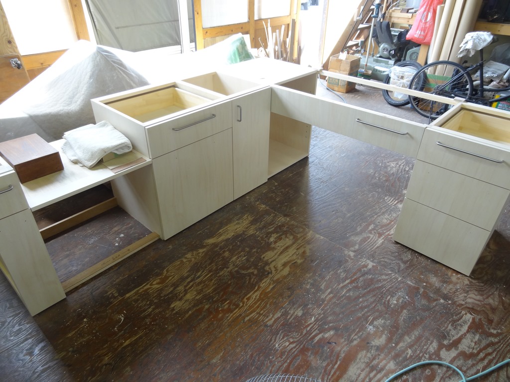 山手K邸2 2017年6月22日 最終更新日時 : 2017年6月22日 高見 耕 キッチン製作 今回はL型キッチン 面材は内外シナ合板です。 扉関係のシナは木目の気に入った材料を使用しています。 (個人的な感覚ですが・・・) 良い物は扉用に確保しています。 取っ手が付いているので扉の開き角度が気になっていました。 意外と開いたので良かったです。 キッチンは完了したので後は洗面台ですね・・・ \ 最新情報をチェック / FacebookXBlueskyHatenaCopy