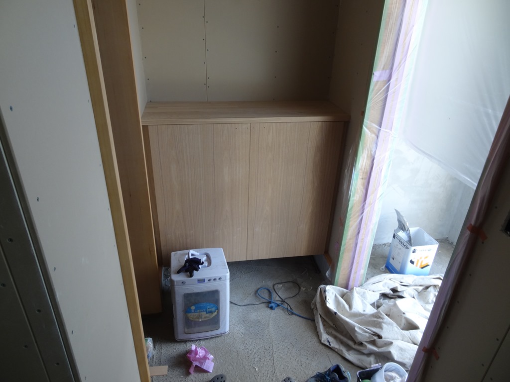 山手N邸2 2017年8月22日 最終更新日時 : 2017年8月22日 高見 耕 盆明け取り付けでした。 18日に搬入+取り付け 19日に残りの取り付け 盆中は天気が悪かったですが搬入の日は天気が良くて 助かりました。 汗まみれになりましたが・・・ キッチン( に見えない・・・) キッチン背面収納 洗面台+吊り戸 下足入れ 天板、扉、ハンドル等の取り付けが終わっていない部分があるので なんだか家具っぽくないです。 今回の搬入は軽トラで行いましたが 次回の搬入は天板が大きすぎるのでトラックになります。 搬入距離が3倍に伸びます・・・(汗) 次回は24日か25日頃の予定です。 \ 最新情報をチェック / FacebookXBlueskyHatenaCopy