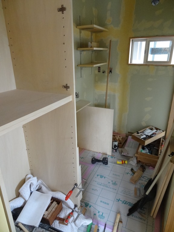杉並のリフォーム4 2014年6月10日 最終更新日時 : 2014年6月10日 高見 耕 本日、家具関係最終日です。 洗面所収納から取り付けです。 次は洗面台・・・ パネルが垂直になるように削っていきます。 天板(人工大理石)をのせて完成。 そしてメディシンBOXも取り付け。 三面鏡。丁番は勝手に変更してあります。(ナイショです) そしてキッチン背面の取っ手取り付け。 これでALL完了です。 久々のシナ合板でしたが温かみがあって良いもんですね~ \ 最新情報をチェック / FacebookXBlueskyHatenaCopy