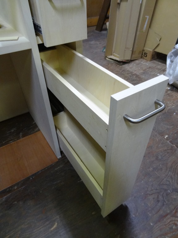 東が丘M邸5 2015年8月7日 最終更新日時 : 2015年8月7日 高見 耕 2Fの家具は取り付け完了したのですが、あまりの暑さで 写真すら撮れずに帰ってきました。 キッチン台 ハイスピードで製作・・・・本日完成しました。 見た目はシンプルですが、現場の納めまで考えると難敵です。 天板はオーダー品です。ステンレスシンク一体型 今回の調味料入れはシナ材で製作しました。 底板はシナのウェル塗装です。 久々のシナ引き出しですが、これも良いですね~ 明日、8/8に取り付けです。 ・キッチン台 ・下足入れ ・洗面所吊り戸 以上3カ所 場所は1Fなので少しは涼しいかな? \ 最新情報をチェック / FacebookXBlueskyHatenaCopy