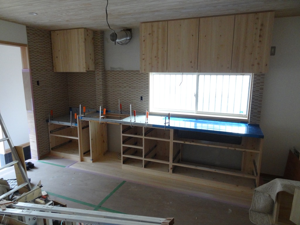 フラッシュ構造と違い桧板(厚さ24mm)なので納めが大変でした。