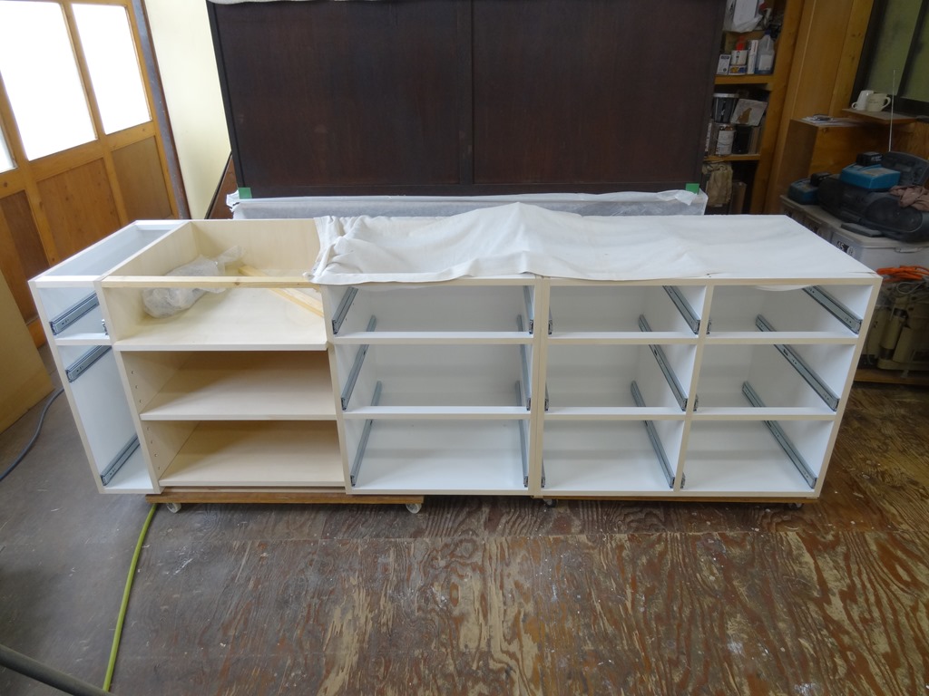 梶野町F邸2 2014年9月18日 最終更新日時 : 2014年9月18日 高見 耕 コンロ台製作中。 内部はポリ合板、 オープン部分はシナ合板。 シナの部分の上はガスコンロになります。 天板はステンレス。 快調(?)に製作中・・・・・ \ 最新情報をチェック / FacebookXBlueskyHatenaCopy