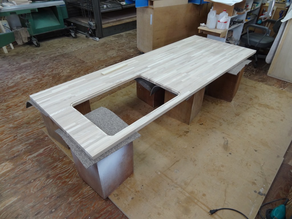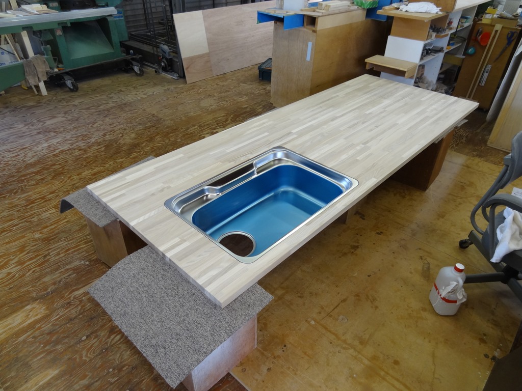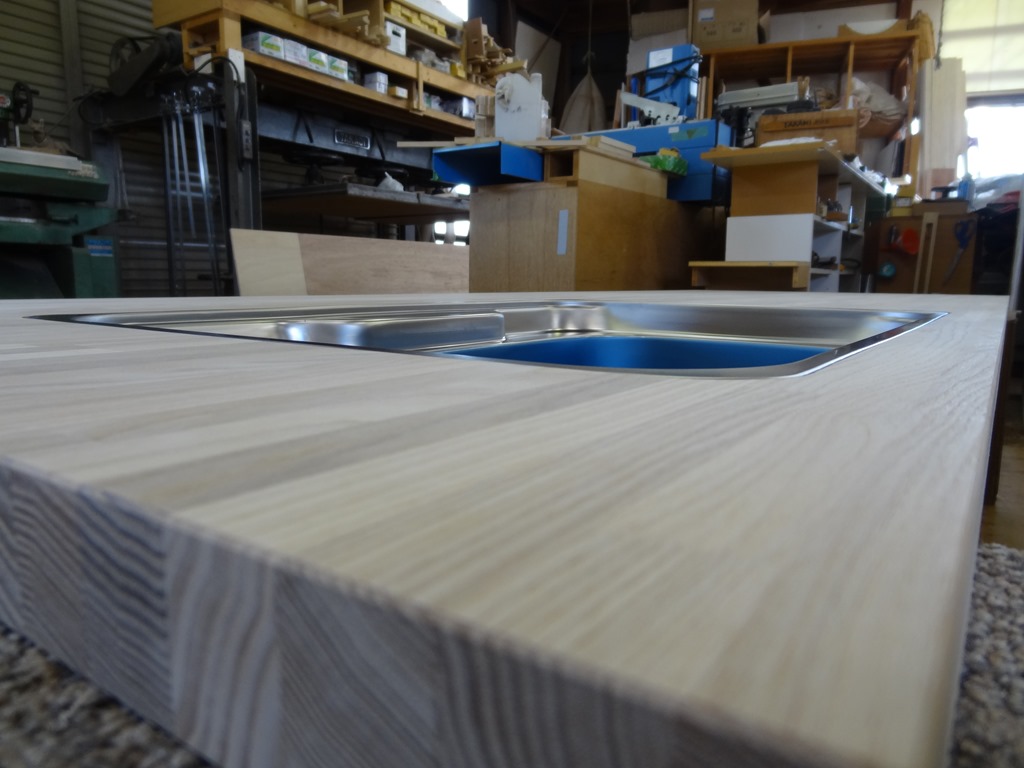梶野町F邸5 2014年10月3日 最終更新日時 : 2014年10月3日 高見 耕 キッチン天板仕上げ 材:タモ集成材 t30 シンク部分穴あけ オーバーシンクを取り付け ツラ納め なかなか良い感じ~♪ 木製天板なので水対策でシリコンべた塗りです。 もちろん手までべた塗りなので写真がとれませんでした・・・・ 表面にシリコンが、はみ出ないように神経集中。 これでキッチン完成。 おまけ キッチンの一番右のパネル内部構造 配線を通すために空洞です。 ジョイント部分は拡大して見て下さい。 \ 最新情報をチェック / FacebookXBlueskyHatenaCopy