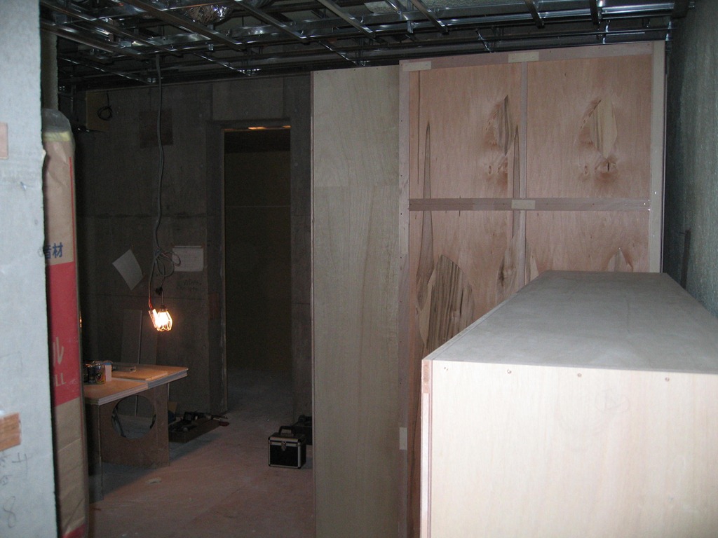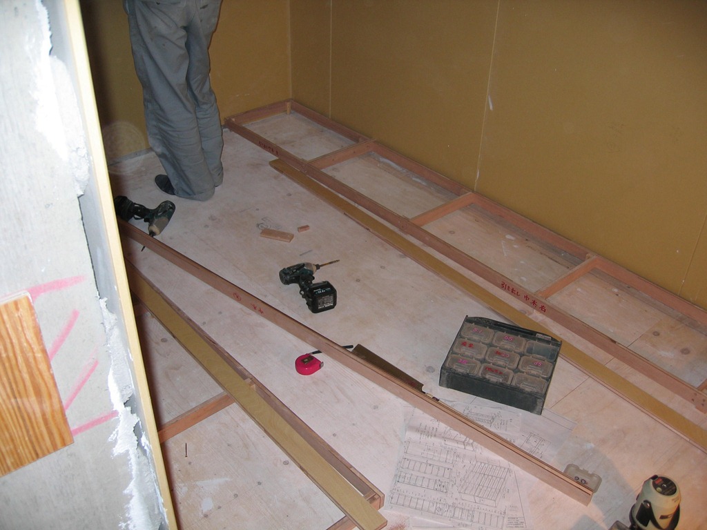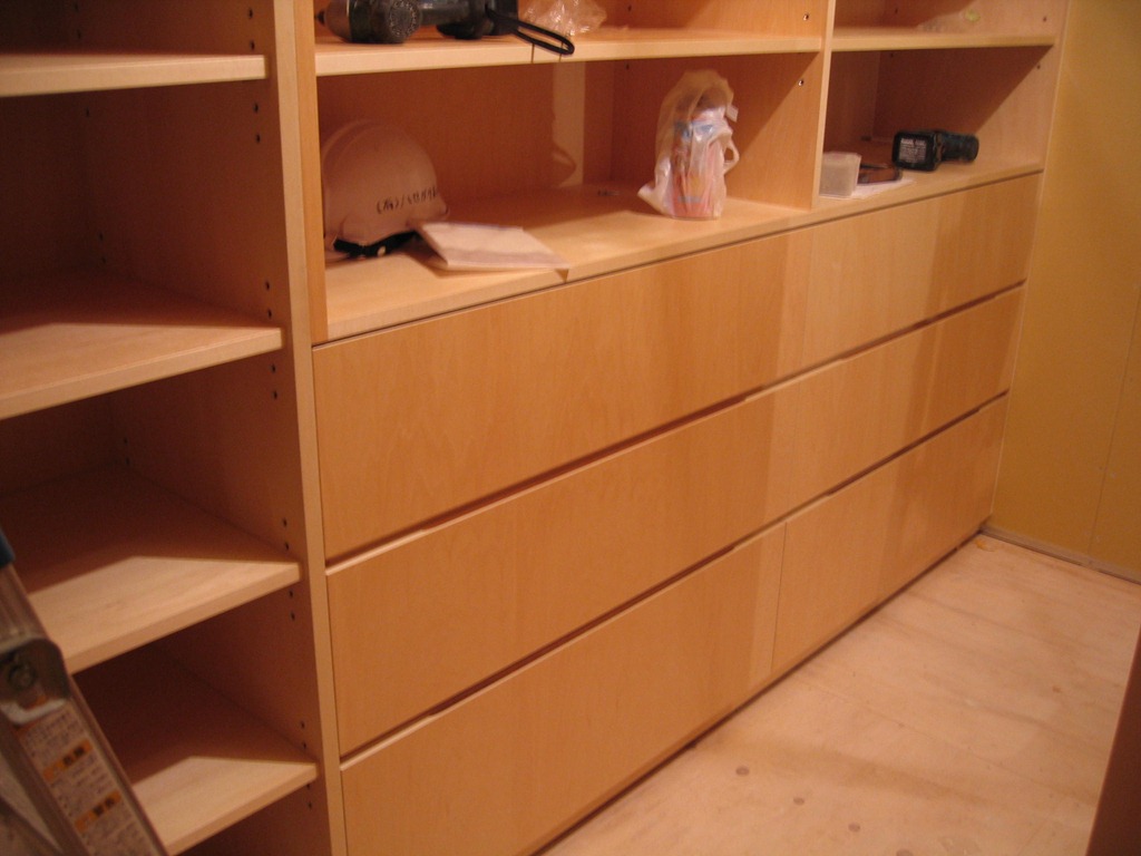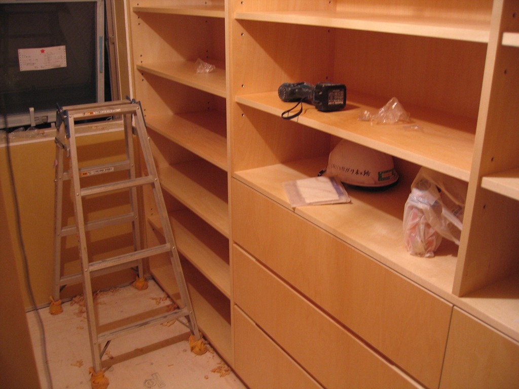 右にあるのが取り付け待ち家具。