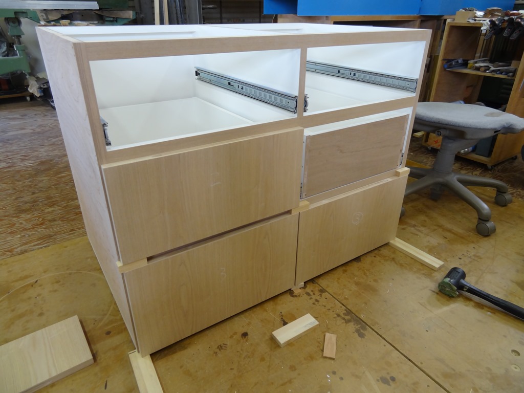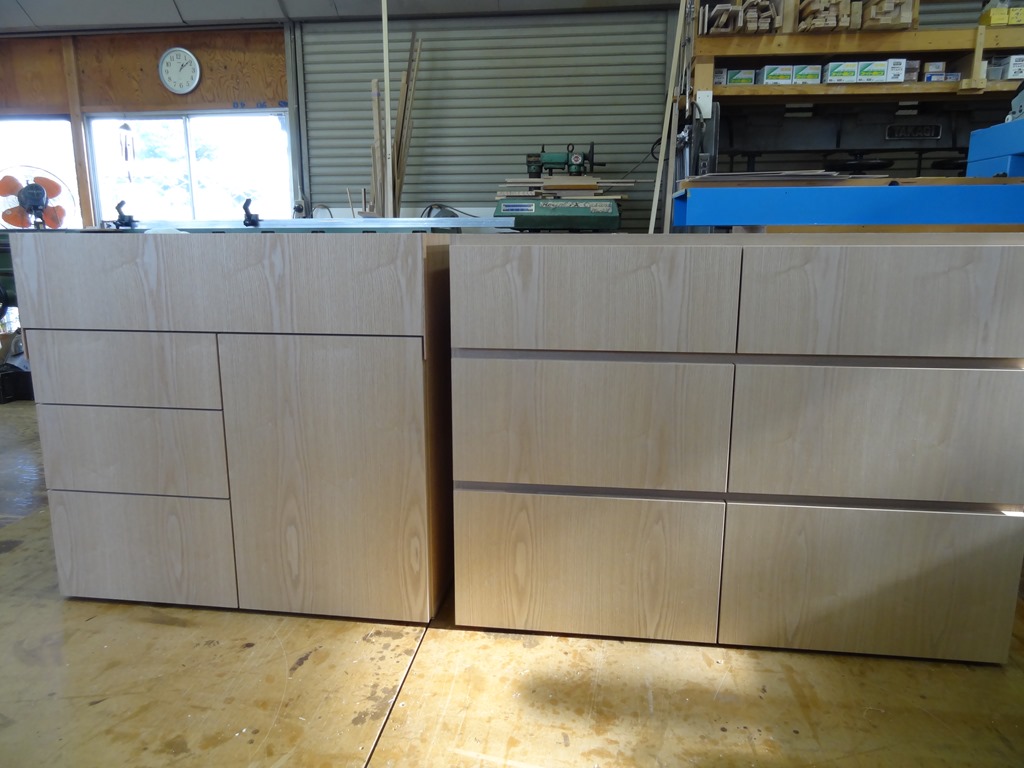 甲府S邸2 2017年1月13日 最終更新日時 : 2017年1月13日 高見 耕 時間が過ぎていますが、明けましておめでとうございます。 さて、現場が順調に進んでいるようで・・・・ 焦ります。 こちらも順調?に製作中。 キッチン背面 下台。 洗面所 右収納 下台 引き出し前板 今回の前板は手ジャクリがあるタイプなので 2cm間をあけて取り付けています。 全体の木目を合わせるために 2cmの部分はカットします。 もったいないですがゴミになってしまいますね。 こんな感じです。 隣の家具は洗面台。 \ 最新情報をチェック / FacebookXBlueskyHatenaCopy