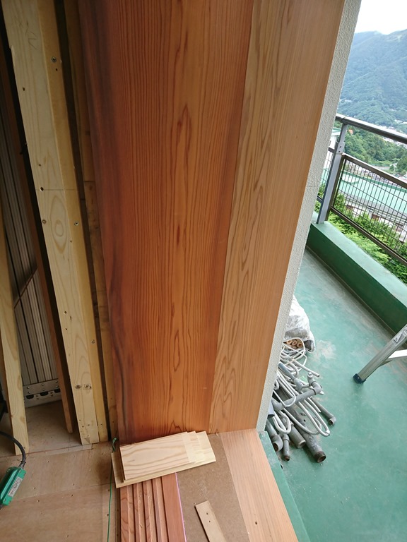 箱根山マンション2 2019年6月17日 最終更新日時 : 2019年6月17日 高見 耕 先週の金曜日の事です。 鵠沼の現場の後に寸法取りに行ってきました。 杉の枠が取り付け完了していて現場も引き締まってきましたね。 赤身を揃える事が大変だったと材木屋さんが言っていたので どんな物かと思っていましたが・・・見て納得です。 奥深い良い色でした。写真より本物は重厚感があります。 この現場には数回行っていますが全て天気が悪いです(汗) このままですと取り付けの日も危ういかも・・・・ ちなみに鵠沼の天気はこんな感じに晴れでした。 \ 最新情報をチェック / FacebookXBlueskyHatenaCopy