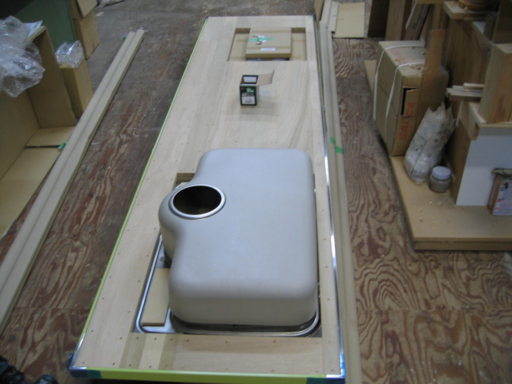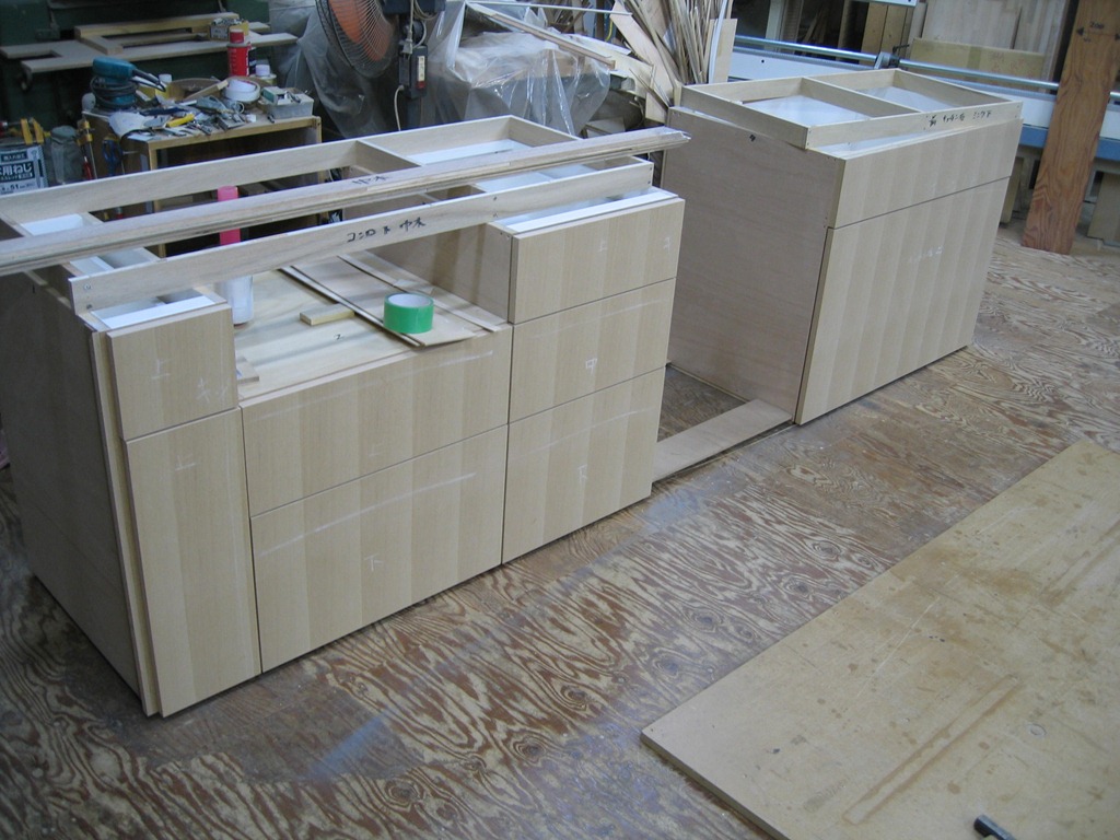 リビングとキッチンの床の高さが違うので木目合わせが大変・・・