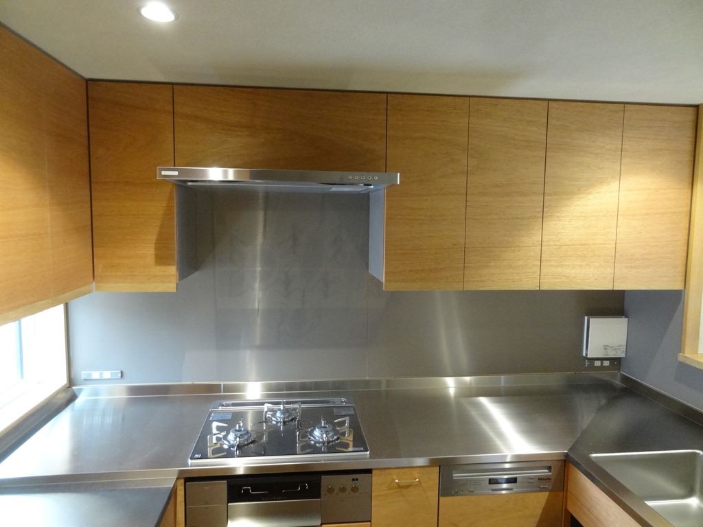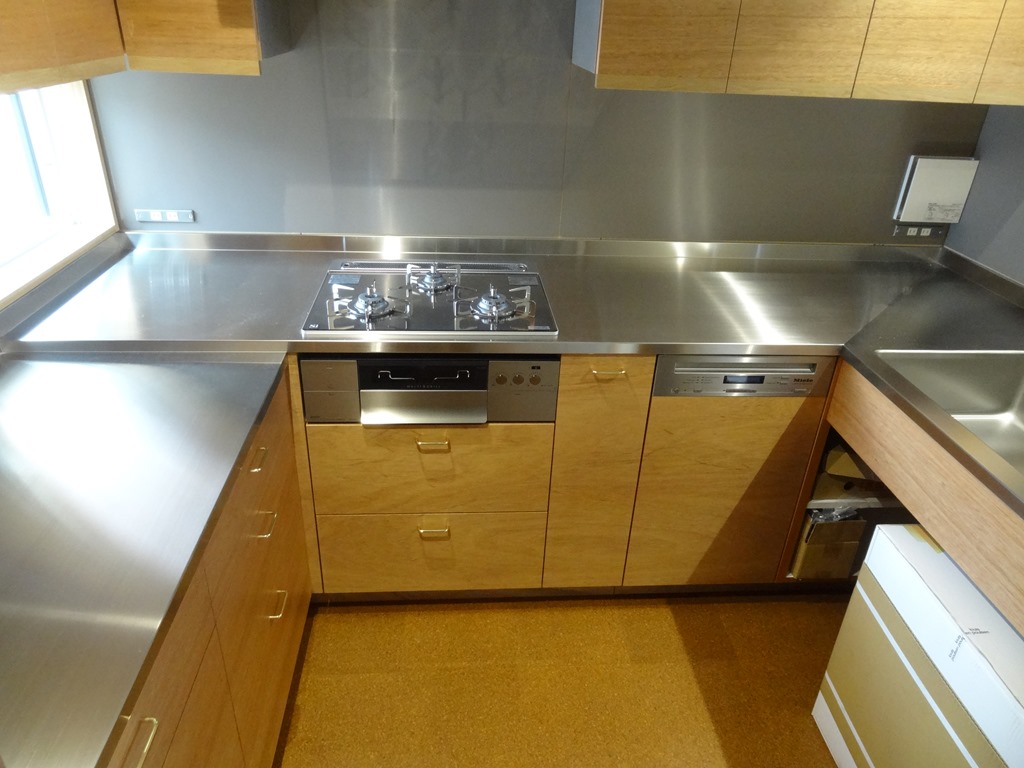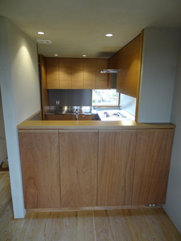 一部キッチンパネルと袖壁を大工さんが完了してから