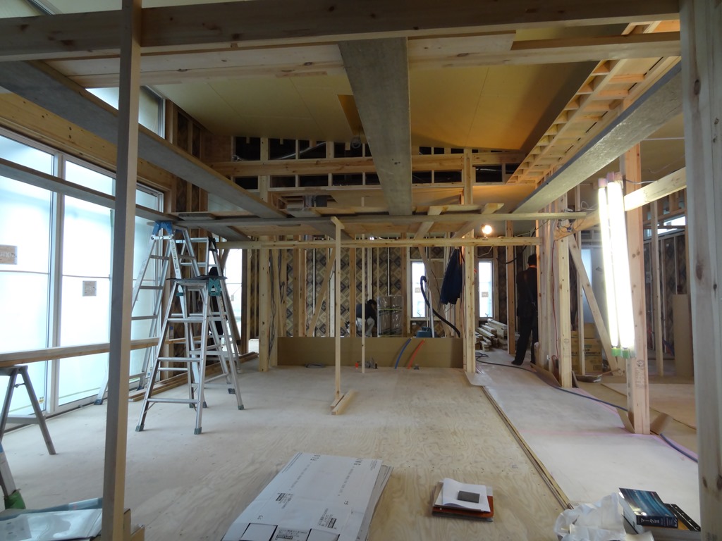 断熱材の模様と壁の下地で面白い感じになっています。