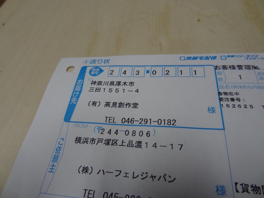 K邸家具12 2014年1月30日 最終更新日時 : 2014年1月30日 高見 耕 ハンドルが到着しました。 待ちに待った物です♪ ・・・・・!? か、会社名が・・・・ 「高見創作堂」・・・・・・・・(汗) なんか画材屋みたいな名前。 多少名前が違っても日本の運送屋さんは届けてくれますね。 よかったよかった。 \ 最新情報をチェック / FacebookXBlueskyHatenaCopy