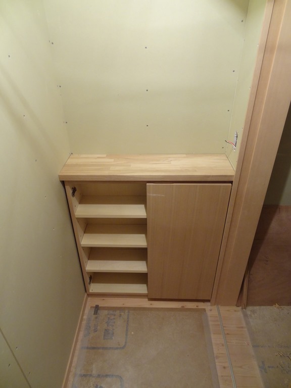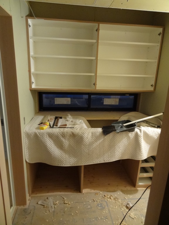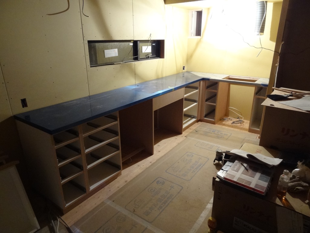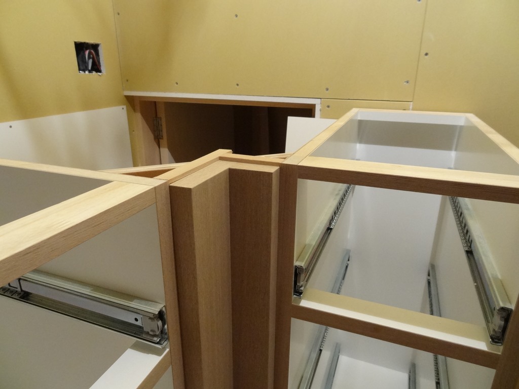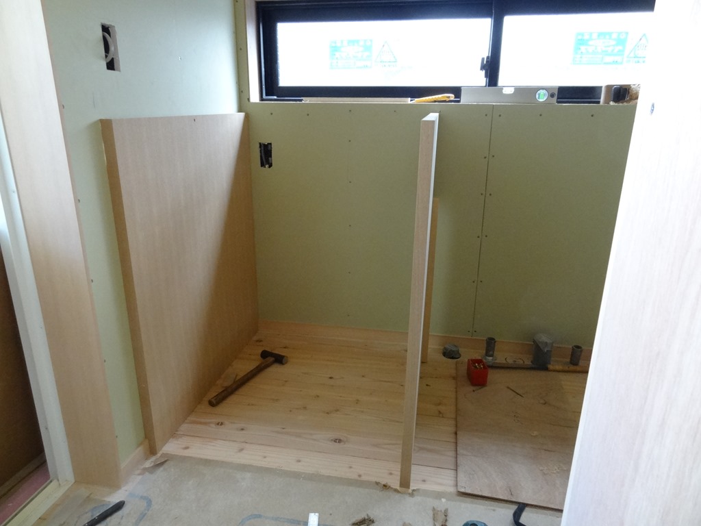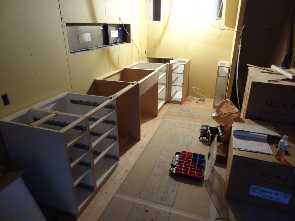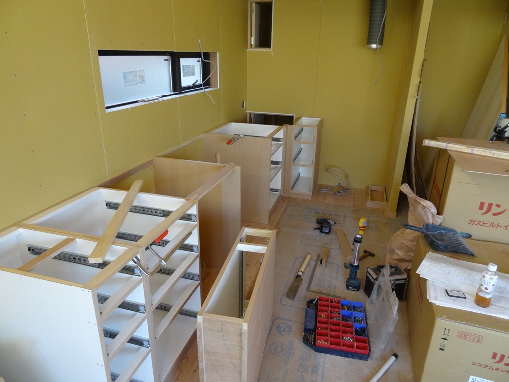 ここの納まりは天板と引き出しを取り付けてからのお楽しみ・・・