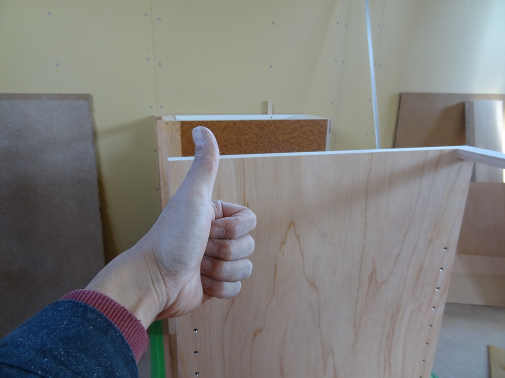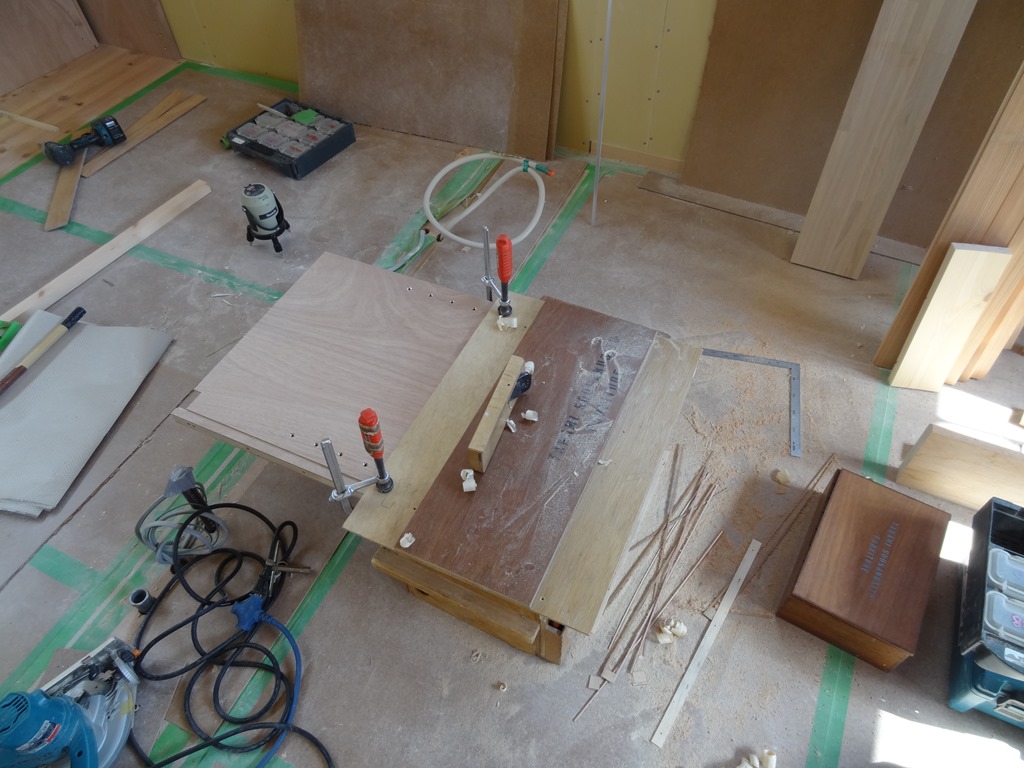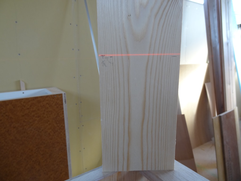 レーザー(水平を出す機械)で側板一枚一枚削り合わせ・・・(汗)