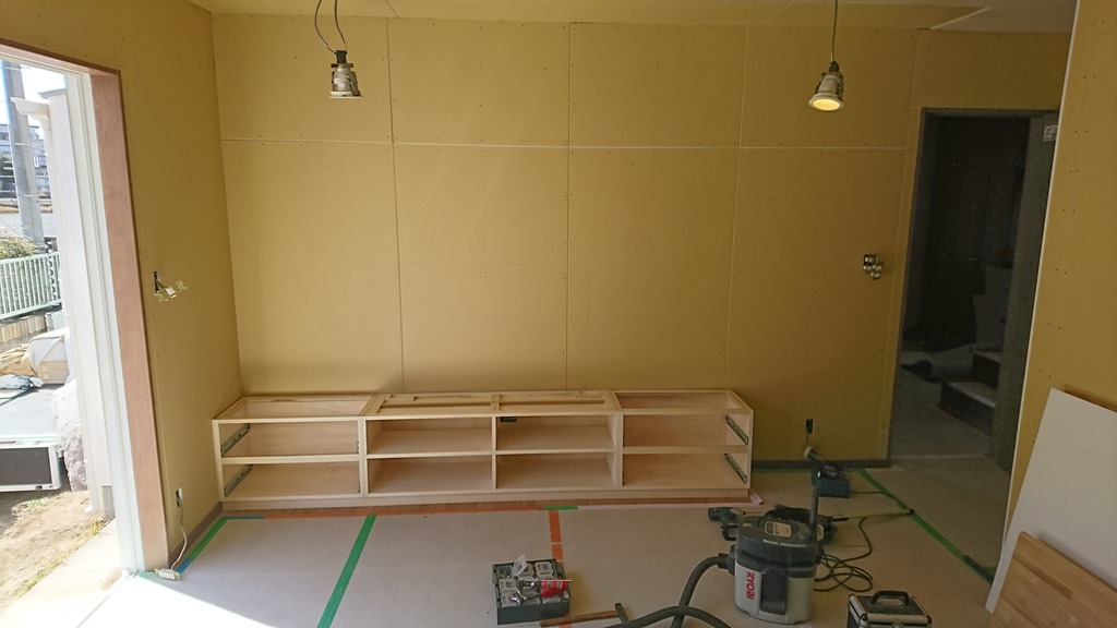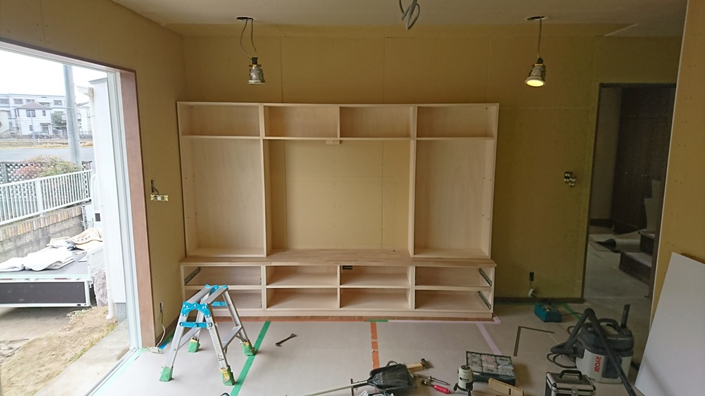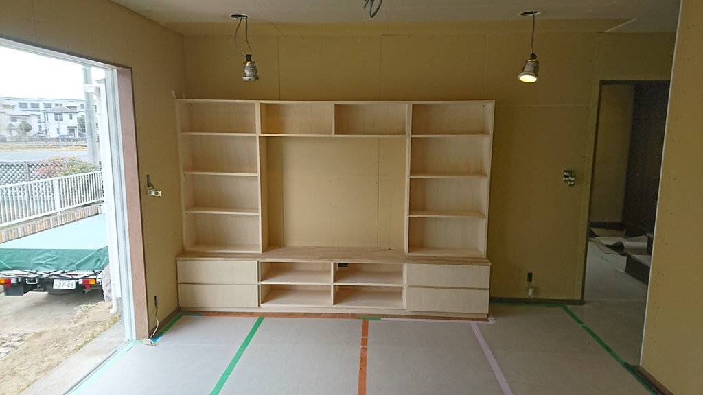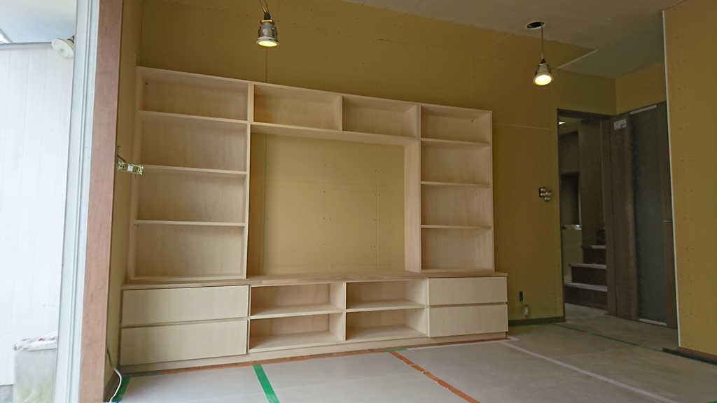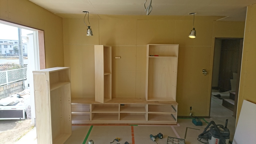 8日の事ですが完成したTV台の取り付けに行ってきました。