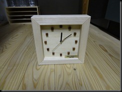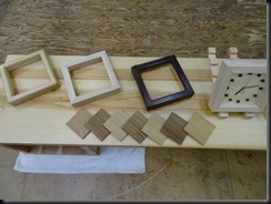いろいろ試行錯誤中。 (仕事の合間を縫って・・・) 全てウレタン塗装。 上3つ 時計の枠 右 試作品1号 最初に製...