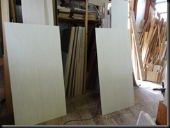 吊り戸棚から製作です。 芯材をシナ合板でサンドイッチにする準備。 芯材にズーム・・ 最近、お気に入りのLVLと呼ばれる...