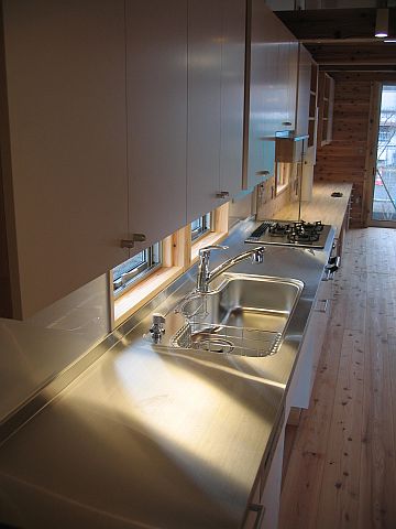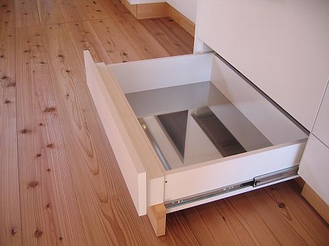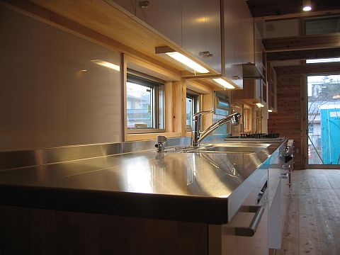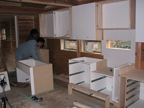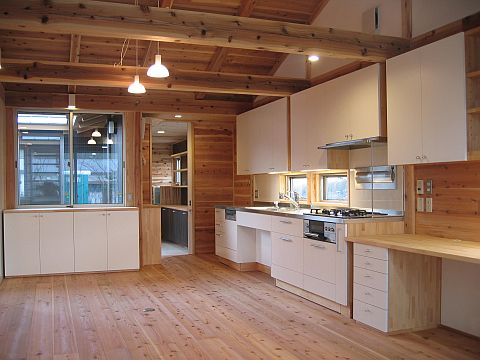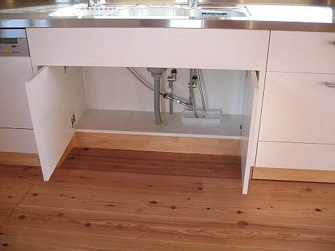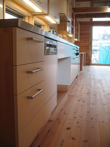 無垢材は、見た目にはわからないですが、多少曲がったりしているので家具自体を壁、床の曲がりに合わせて取り付けられるように削れるように製作しました。